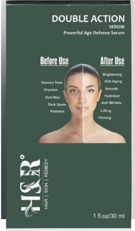 Double Action Serum combines advanced anti-aging actives with deep hydration to deliver visible results. It stimulates collagen production, improves skin elasticity, and smoothens wrinkles while restoring moisture balance. Its dual-action formula revitalizes tired skin, enhances firmness, and promotes a radiant, youthful glow.